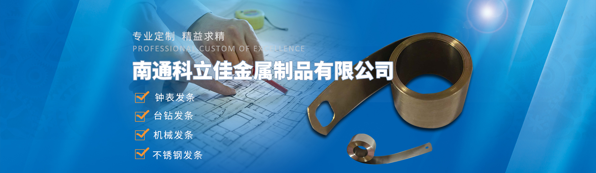 南通科立佳金屬制品有限公司(海門海南發條廠)建于1995年。現有職工人數50多人是專業生產多品種花式發條的骨干企業,年生產能力500萬條,單品生產在100萬條以上。主要產品為鐘表發條、臺鉆發條、機械發條、不銹鋼發條、小型發動機起動發條、電刷彈簧、精良木工帶鋸、 精良裁布鋼帶和彈簧帶鋼類的各色制品制件。產品行銷全國20多個省、市、自治區。同上海正峰公司、美國百得楊州電動工具分公司、朝鮮自治區延邊龍川公司結為長期伙伴關系......